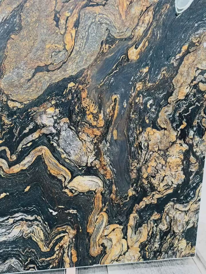 Black Vulkon Leather Granite is a refined and contemporary interpretation of classic deep-black stone. Its rich, velvety black tones provide a dramatic foundation for any space, while the leathered surface introduces a subtle, tactile texture that enhances the stone’s natural character. Unlike traditional polished granite, the leather finish offers a soft, matte aesthetic with a gentle sheen that beautifully accentuates the depth and nuance of the stone’s color without appearing glossy.