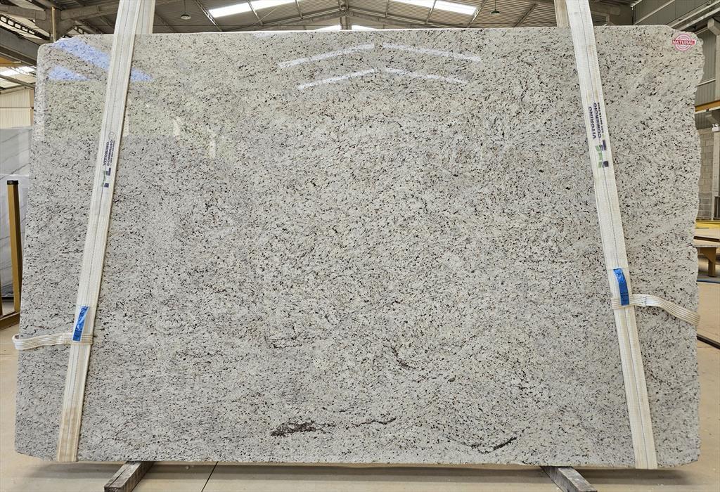 DALLAS WHITE GRANITE Dallas White Granite is a beautiful classic granite quarried from the heart of Brazil. This stone features a soft white background with subtle gray and beige flecks, offering a clean, elegant look that can complement a variety of design styles. Its polished finish gives it a smooth, shiny surface that enhances its natural colors, making it an ideal choice for both modern and traditional spaces. With 13 slabs available, each measuring 127x77 cm and 3 cm thick, Dallas White Granite provides ample material for large-scale projects, including kitchen countertops, bathroom vanities, and flooring. Its versatile appearance pairs well with almost any cabinetry or décor, creating a timeless aesthetic. This granite is known for its durability and resilience. It is heat-resistant, scratch-resistant, and stain-resistant, making it a perfect fit for high-traffic areas or homes with active kitchens. The low maintenance required to keep Dallas White Granite looking pristine is a significant advantage for busy homeowners. Dallas White Granite combines beauty, practicality, and strength, offering a durable solution that adds value and sophistication to any home or office. Its versatility and timeless appeal make it a perfect choice for those looking to enhance their space with natural stone.